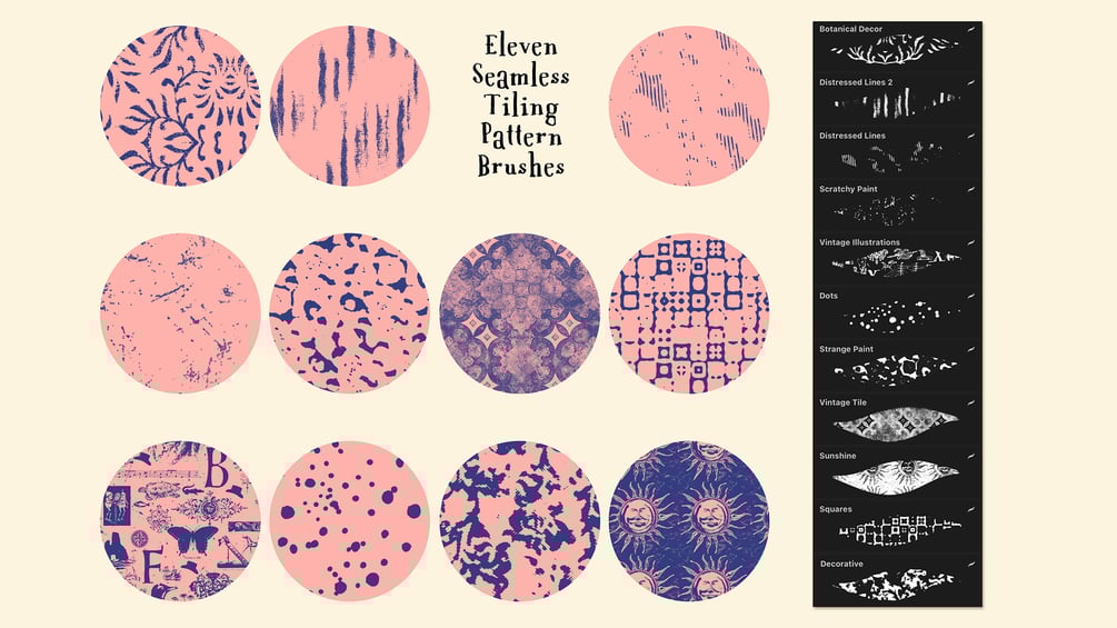 You'll get eleven seamless tiling brushes for Procreate